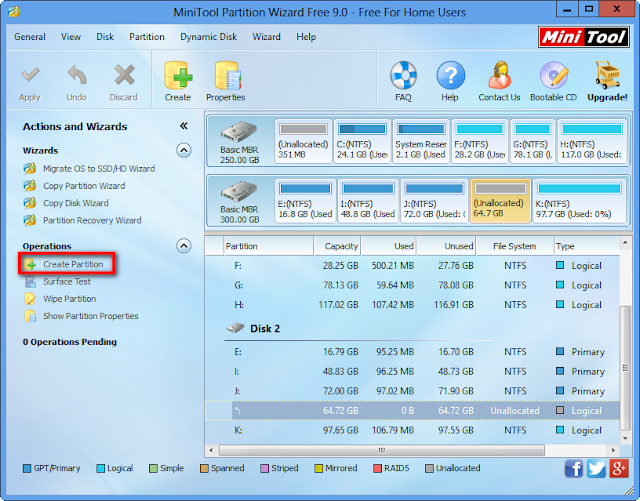 Fortunately, third-party partition magic can help users to increase maximum number of partitions quite effectively. Here, you can try using MiniTool Partition Wizard since this app enjoys more than 15 millions downloads. In addition, it is a piece of free partition software which can help to complete partition creation in almost all situations. And, this freeware can help to create partition without bringing any influence on original data because of its high security. More importantly, it provides wizard-based operation and simple interface.