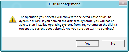 If there have been four primary partitions on MBR disk, users will be prompted to convert their basic disk to dynamic disk when they are creating a new one in unallocated space shrunk from primary partition.